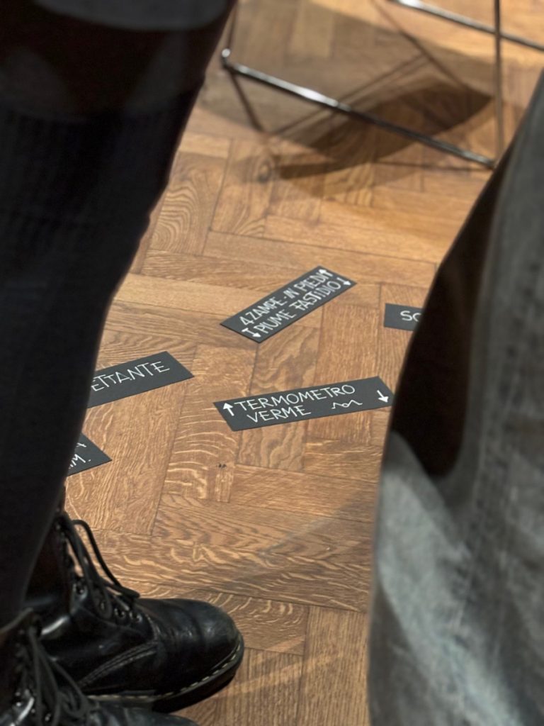 The residency unfolded through a two-part process between Italy and Austria. In Italy, Paola and Stefano conducted a series of interviews to assemble a register of olfactory associations: a sensorial compendium of how participants across generations linked particular emotional states to specific smells, and how these associations manifested somatically. Arriving in Austria with this corpus of material, they initiated a second phase at the Francisco Carolinum (FC) Linz, transforming the Italy-based participants’ olfactory-emotional mappings into spatial coordinates. New participants were invited into the museum space and asked to “retranslate” the extracted scents from the Italian conversations—now presented to them as material samples without verbal descriptions—into verbal, pitches (Where does each smell resonate in your body? What kind of pitch does it have? Low? High?) and spatial responses. Through this reciprocal engagement, smell became a vector of translation: between bodies, sensorial registers and scales of cultural conditioning.